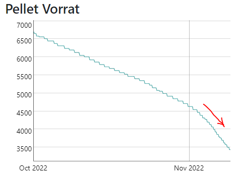 Pellet Vorrat im Verlauf zeigt den Verbrauch an: je steiler die Kurve fällt umso mehr wird verbrannt.